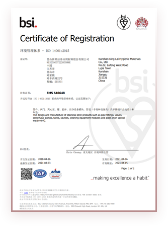 The named company is authorized by The American Society of Mechanical Engineers(ASME) for the scope shown below in accordance with the applicable rules of the ASMEBPE Standard on Bioprocessing Equipment. The use of the ASME Single Certification Mark and the authority granted.