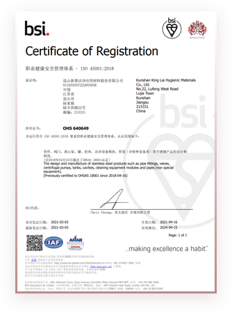 2021年8月昆山新莱洁净应用材料股份有限公司获得安全生产标准化二级企业(机械)证书。